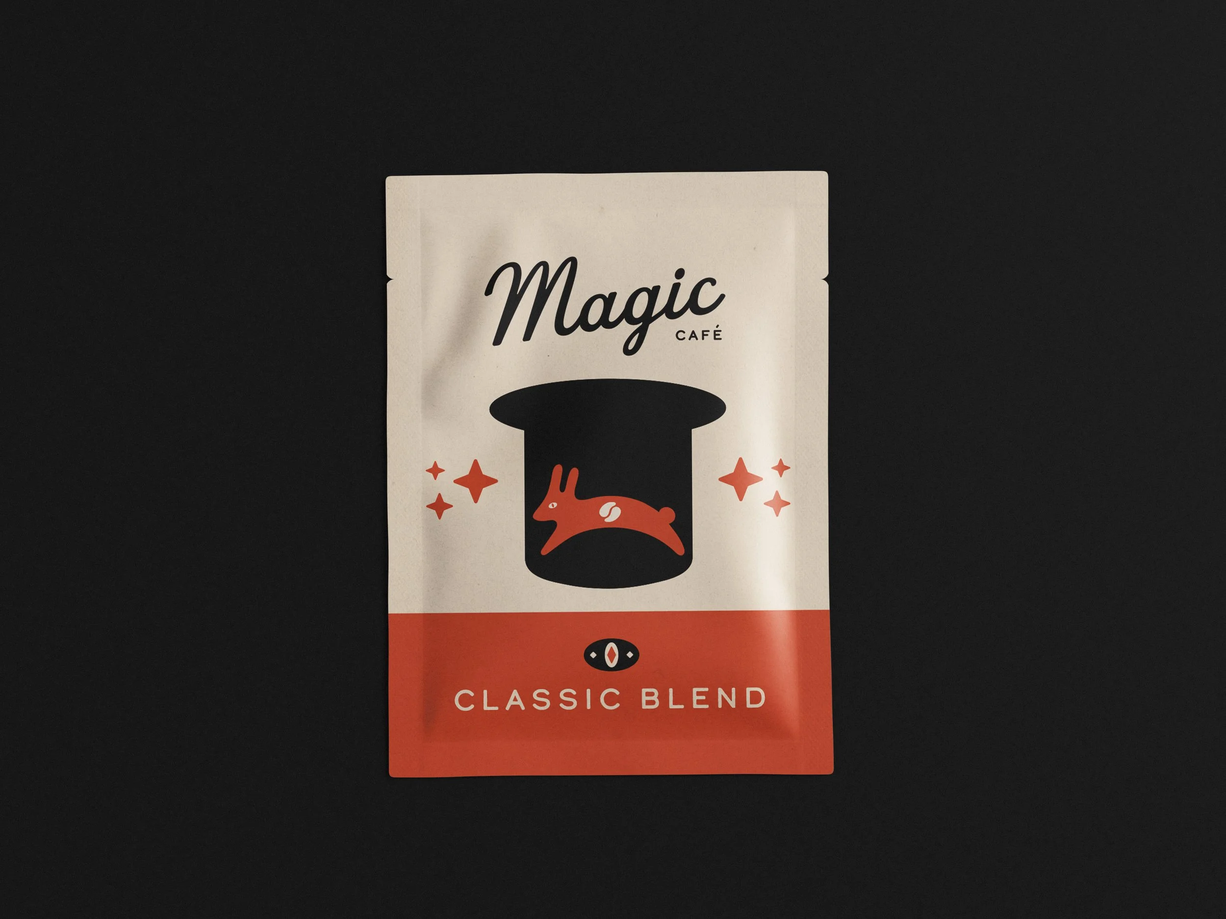Magic Café Branding Dec 25 Written By Vivian Li Magic Café is an LA-based instant coffee brand using organic and high-quality ingredients. View fullsize Packaging mockup for Classic Blend Bag View fullsize Logo & Descriptor Marks View fullsize Stickers View fullsize Additional flavor View fullsize View fullsize View fullsize View fullsize T-Shirt View fullsize Tote Bag Branding Vivian Li